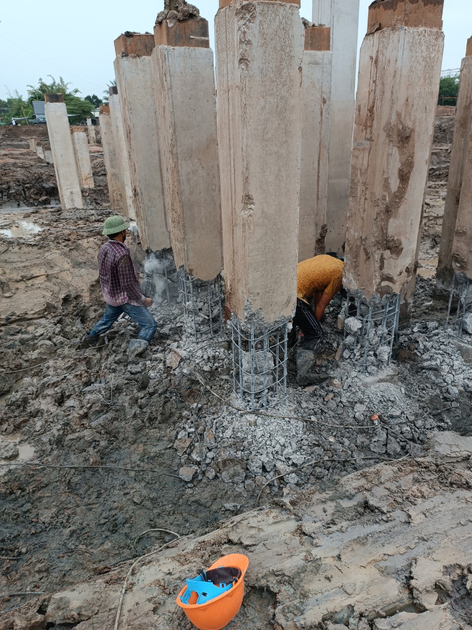 Tiến hành đập phá đầu cọc